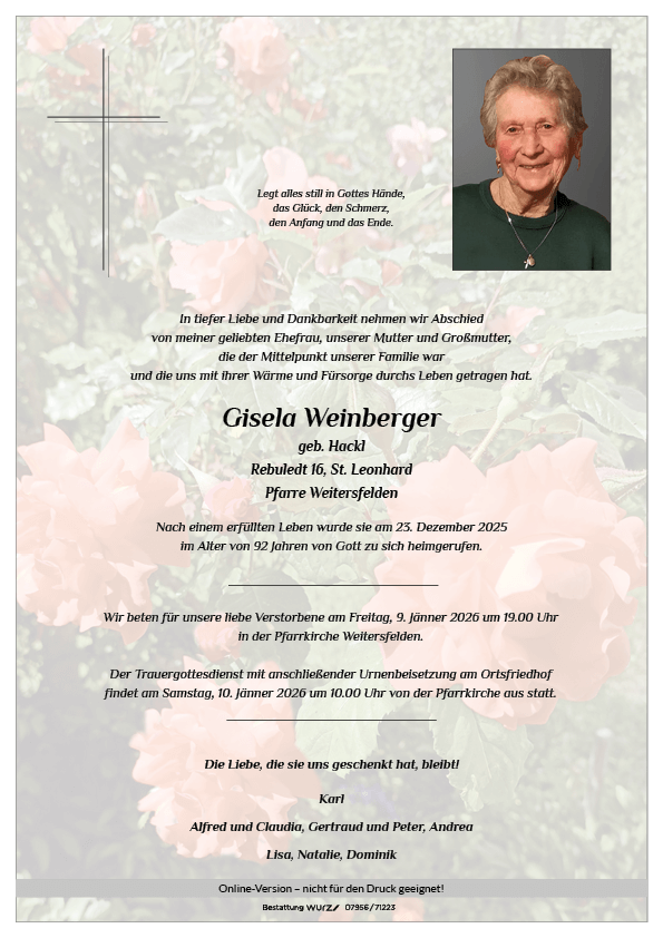 Zum Tod eurer lieben Gattin und Mama unsere ehrliche Anteilnahme. Wir trauern mit euch um einen ganz lieben und wertvollen Menschen. Wir haben sie sehr gemocht und werden sie in sehr guter Erinnerung behalten.