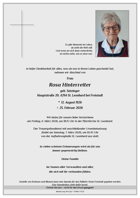 Mein aufrichtiges Beileid und tief empfundenes Mitgefühl. Der ganzen Familie wünsche ich viel Kraft in der schweren Zeit des Abschiednehmens und Loslassens. Ludwig Riepl (Wigg)